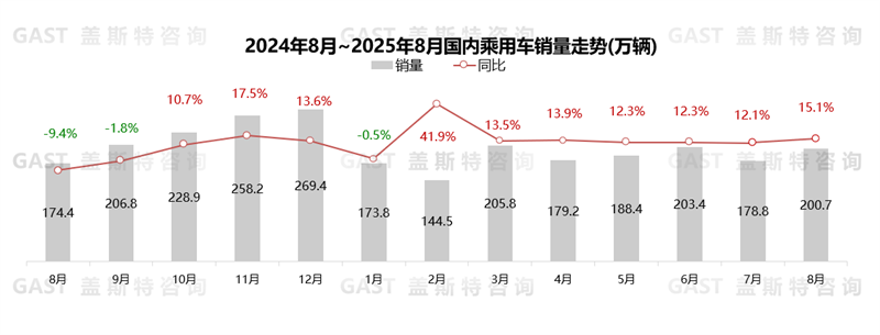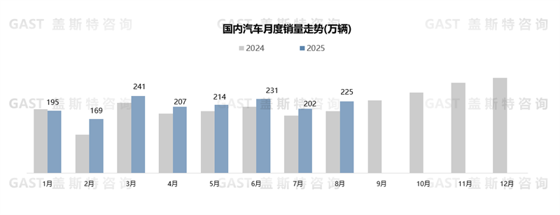8月,國(guó)內(nèi)汽車(chē)市場(chǎng)銷(xiāo)售225萬(wàn)輛,環(huán)比增長(zhǎng)11.3%,同比增長(zhǎng)15.6%。其中,國(guó)內(nèi)乘用車(chē)市場(chǎng)呈現(xiàn)穩(wěn)中有升的態(tài)勢(shì),這主要得益于車(chē)企密集推出新車(chē)型,同時(shí)地方促消費(fèi)政策持續(xù)發(fā)力,有效提振了市場(chǎng)需求;國(guó)內(nèi)商用車(chē)市場(chǎng)復(fù)蘇明顯,NEV商用車(chē)的滲透推廣,以及天然氣需求的釋放,成為其增長(zhǎng)的關(guān)鍵因素。