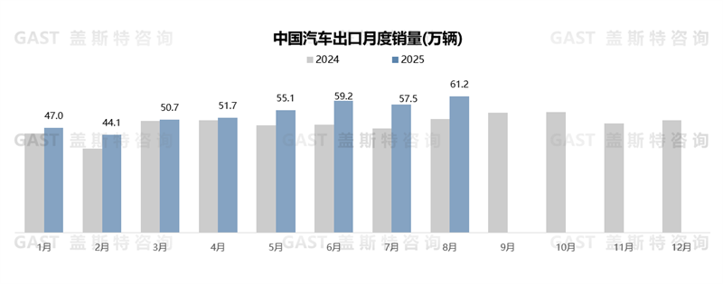 8月,汽車(chē)出口61.2萬(wàn)輛,環(huán)比增長(zhǎng)6.2%,同比增長(zhǎng)19.6%。從動(dòng)力類(lèi)型看,ICE出口量同比下滑超3%,其中對(duì)俄羅斯的出口量下滑超40%;NEV滲透率已超36%。