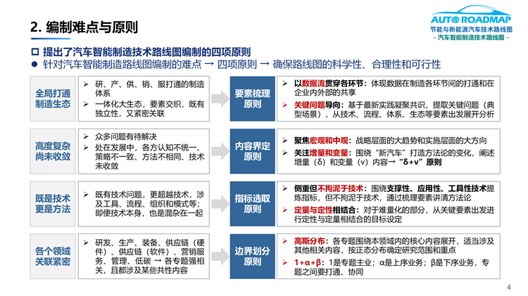 在此情況下,亟需編制汽車智能制造技術(shù)路線圖,以總結(jié)經(jīng)驗(yàn)、澄清誤區(qū),凝聚行業(yè)共識(shí)、明確發(fā)展路徑,推動(dòng)汽車產(chǎn)業(yè)實(shí)現(xiàn)高質(zhì)量的可持續(xù)發(fā)展。