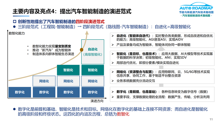 4.提出了汽車智能制造的四階段演進(jìn)范式:即數(shù)字化→網(wǎng)絡(luò)化→智能化→自進(jìn)化