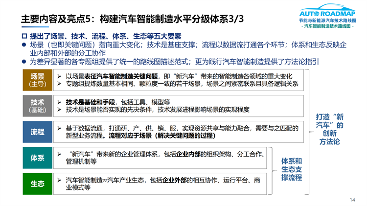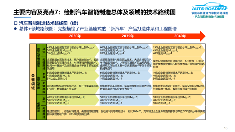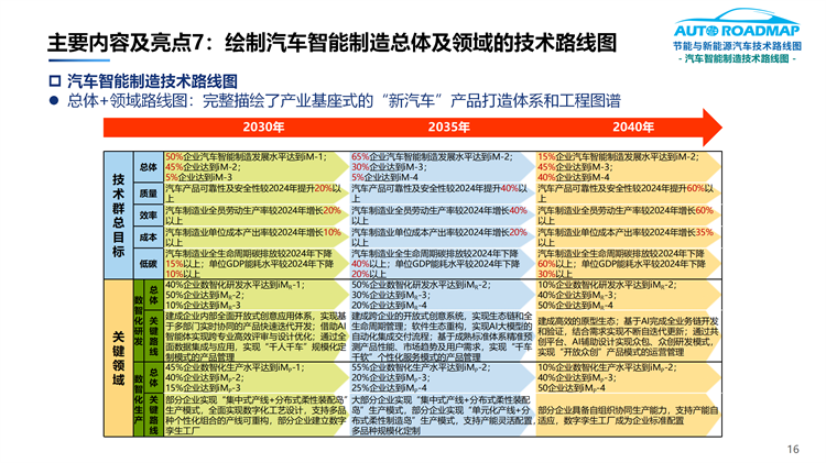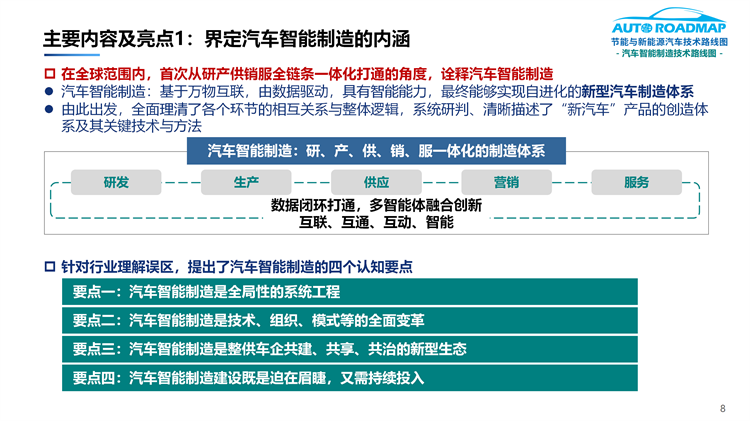 7.完整描繪了具有產(chǎn)業(yè)基座式的“新汽車”產(chǎn)品打造體系和工程圖譜(即汽車智能制造總體及分領(lǐng)域的技術(shù)路線圖)