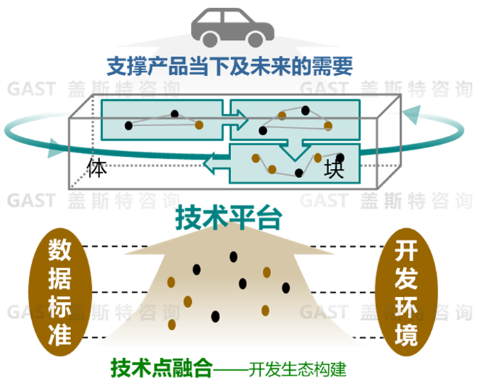 車企要清晰定義技術(shù)融合的基座,以技術(shù)平臺(tái)為主,含整車架構(gòu)、技術(shù)模塊,背后是串聯(lián)不同點(diǎn)的技術(shù)的邏輯、接口、框架、標(biāo)準(zhǔn)。這要求企業(yè)在技術(shù)融合過程中,不僅要關(guān)注單一技術(shù)點(diǎn)的創(chuàng)新,還要考慮技術(shù)之間的兼容性和協(xié)同性,確保技術(shù)體系的完整性和一致性。同時(shí)車企還要以技術(shù)平臺(tái)需要為牽引,建立內(nèi)外部生態(tài)資源整合的標(biāo)準(zhǔn),將一切支撐平臺(tái)的核心技術(shù)點(diǎn)及其供應(yīng)商納入生態(tài)融合范疇,確保開發(fā)環(huán)境與開發(fā)語言的統(tǒng)一(數(shù)據(jù)、模型、工具鏈等)。這有助于形成統(tǒng)一的技術(shù)生態(tài),促進(jìn)技術(shù)資源的有效整合和利用。