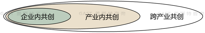 在車企具體實(shí)踐過程中,圍繞內(nèi)外部的共創(chuàng)可大致分成三個(gè)層次,如圖5所示:1、在企業(yè)內(nèi)部實(shí)現(xiàn)共創(chuàng),即內(nèi)部單一部門(如研發(fā))或跨部門(研發(fā)、生產(chǎn)、供應(yīng))基于已有技術(shù)進(jìn)行再迭代和再創(chuàng)新;2、車企與產(chǎn)業(yè)鏈內(nèi)合作伙伴(如芯片廠商)圍繞新產(chǎn)品、新技術(shù)進(jìn)行聯(lián)合開發(fā),實(shí)現(xiàn)深度協(xié)同;3、車企與其他產(chǎn)業(yè)主體(如ICT產(chǎn)業(yè))圍繞技術(shù)遷移應(yīng)用和新技術(shù)的突破互通有無、聯(lián)合創(chuàng)新,拓展創(chuàng)新的邊界。