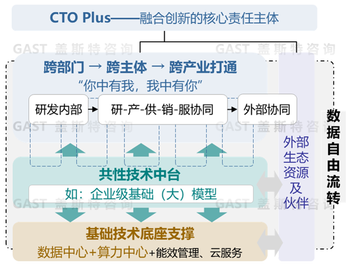 最終,為了能夠?qū)崿F(xiàn)內(nèi)外多個(gè)主體的數(shù)據(jù)自由流轉(zhuǎn),支撐CTO Plus與各主體的研發(fā)決策與資源共享,車企還要構(gòu)建融合創(chuàng)新的基礎(chǔ)技術(shù)支撐,通過數(shù)據(jù)中心、算力中心、能效管理與云服務(wù)等底座的建設(shè),支撐企業(yè)共性技術(shù)中臺(tái)的搭建(如企業(yè)級(jí)的基礎(chǔ)大模型),實(shí)現(xiàn)各主體的實(shí)時(shí)連接、知識(shí)共享與能力協(xié)同。