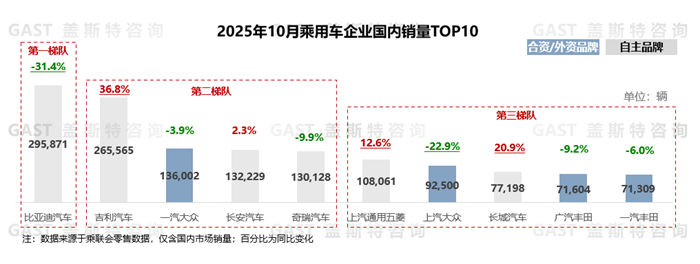 乘用車企業(yè)國內銷量TOP10:自主品牌占據(jù)6席