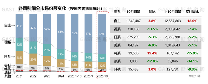 市場份額角度,10月自主品牌市場份額達到69%,同比增長3個百分點。